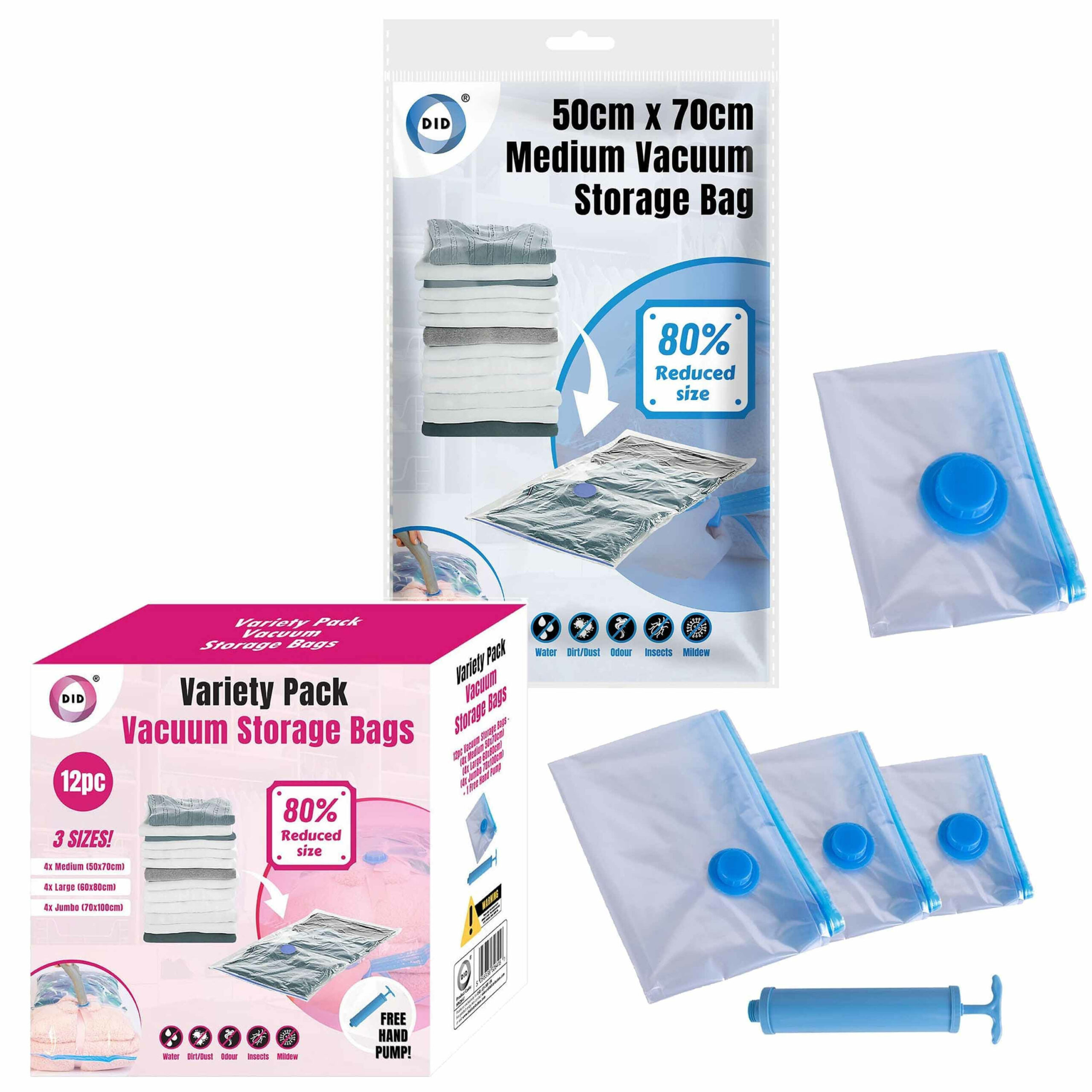 Set van 15 stuks compressie/vacuum opbergzakken in 3 formaten. Ruim kleding en of beddengoed eenvoudig op met deze transparante compressie/vacuum opbergzakken die tot 80% ruimte besparen. De zakken beschermen tegen vocht, vuil, geur, insecten en schimmels. Handpomp is meegeleverd. Materiaal: kunststof. Afmeting opbergzakken: 7 stuks van 50 x 70 cm, 4 stuks van 60 x 80 cm en 4 stuks van 70 x 100 cm. , Dit artikel bestaat uit:, 1x Compressie/vacuum opbergzakken met handpomp – 12 stuks – 3 formaten, 3x Compressie/vacuum opbergzak – 50 x 70 cm